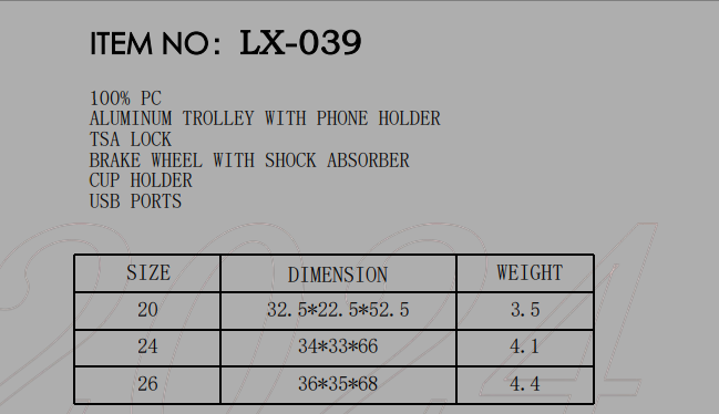 100% PC ALUMINUM TROLLEY WITH PHONE HOLDER TSA LOCK BRAKE WHEEL WITH SHOCK ABSORBER CUP HOLDER USB PORTS